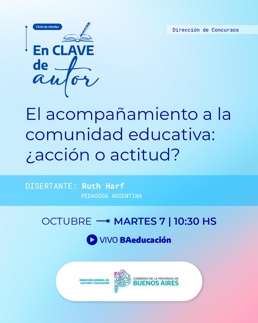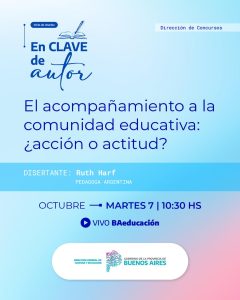 La propuesta «El acompañamiento a la comunidad educativa: ¿acción o actitud?» estará a cargo de la Pedagoga Argentina Ruth Harf